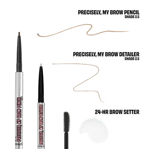 | Tell me more | What’s all the brow hoop-la? Oh, you know, just a trio of all your defining, detailing & setting necessities for brows. Dive into precision with two full-size pencils: Precisely, My Brow Pencil for defined, hair-like strokes and Precisely, My Brow Detailer for microfine lines and precise detailing. Then, lock it all in with 24-HR Brow Setter, a flake-free clear gel that holds strong all day*. |