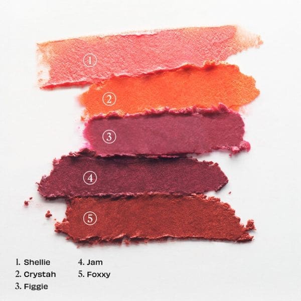Jam (Rich berry), Shellie (Warm seashell-pink), Figgie (Cool purple-pink), Crystah (Strawberry pink)